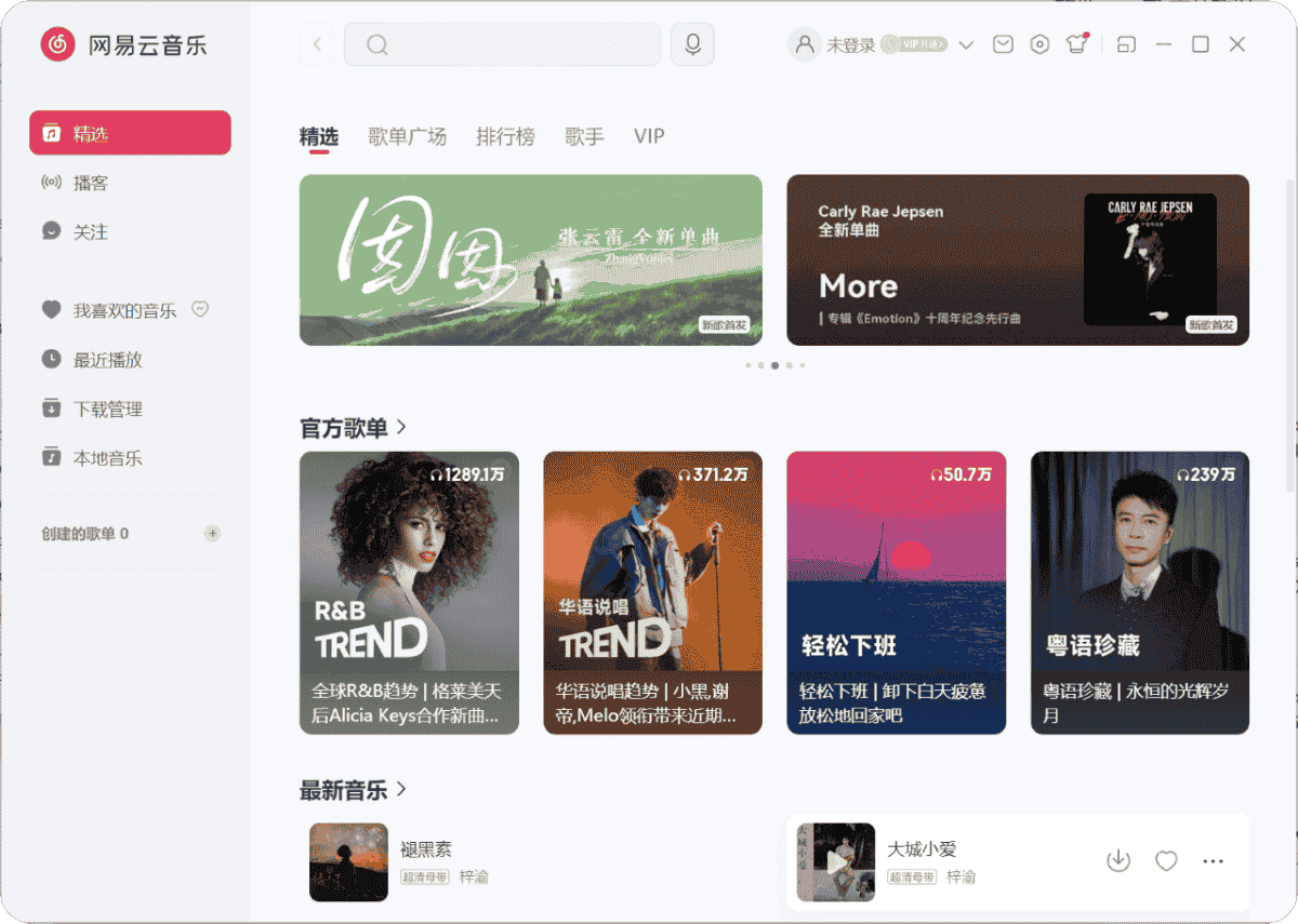 网易云电脑版,网易云音乐播放器,网易云音乐客户端去升级绿色便携版