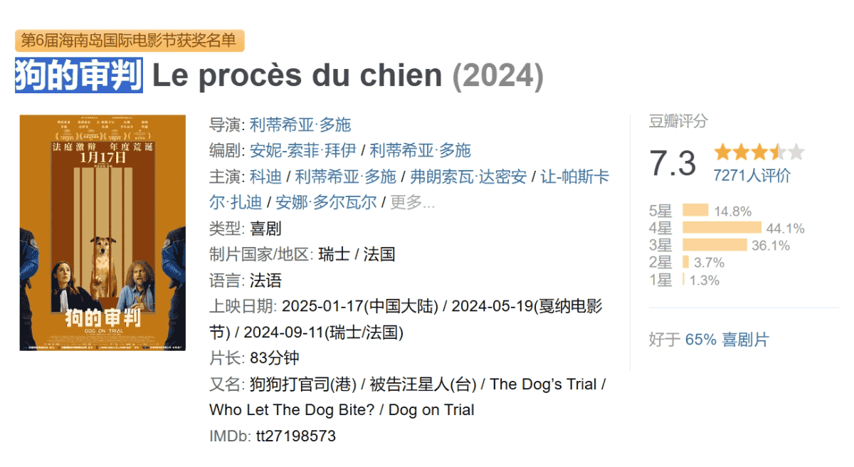 ❤️【戛纳“狗狗金棕榈奖”(小狗科迪)‌】狗的审判【2024】HD1080P [中文字幕] [3.6G]
