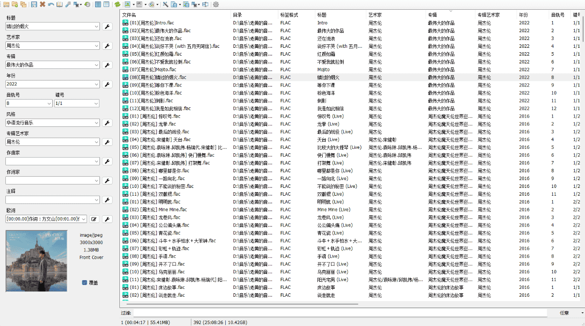 命名方式:专辑,如:2022.周杰伦.最伟大的作品,歌曲:(01) [周杰伦] 蜗牛.flac,方便管理