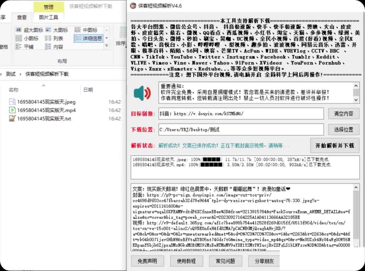 【PC】侠客短视频解析去水印V5.1丨支持国内外众多短视频下载【20M】