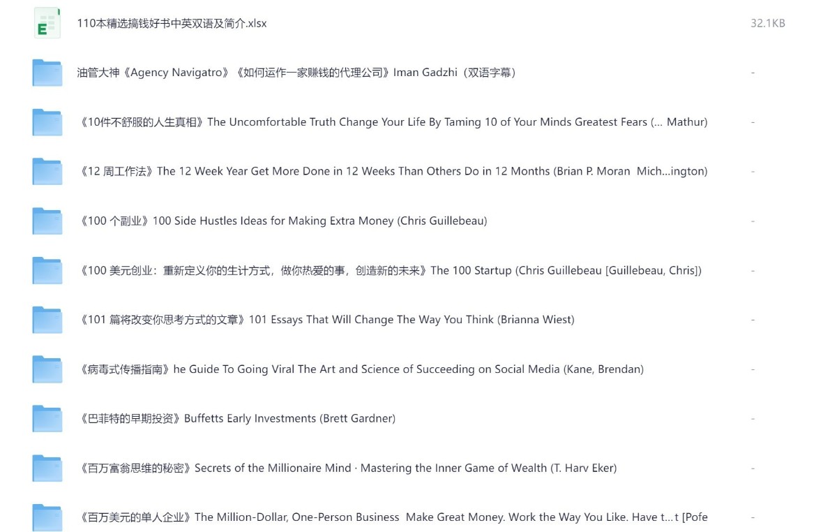 110本尚未引入国内的搞钱好书(中英双语版)适合不同阶段的财富成长需求【PDF】【9.7GB】