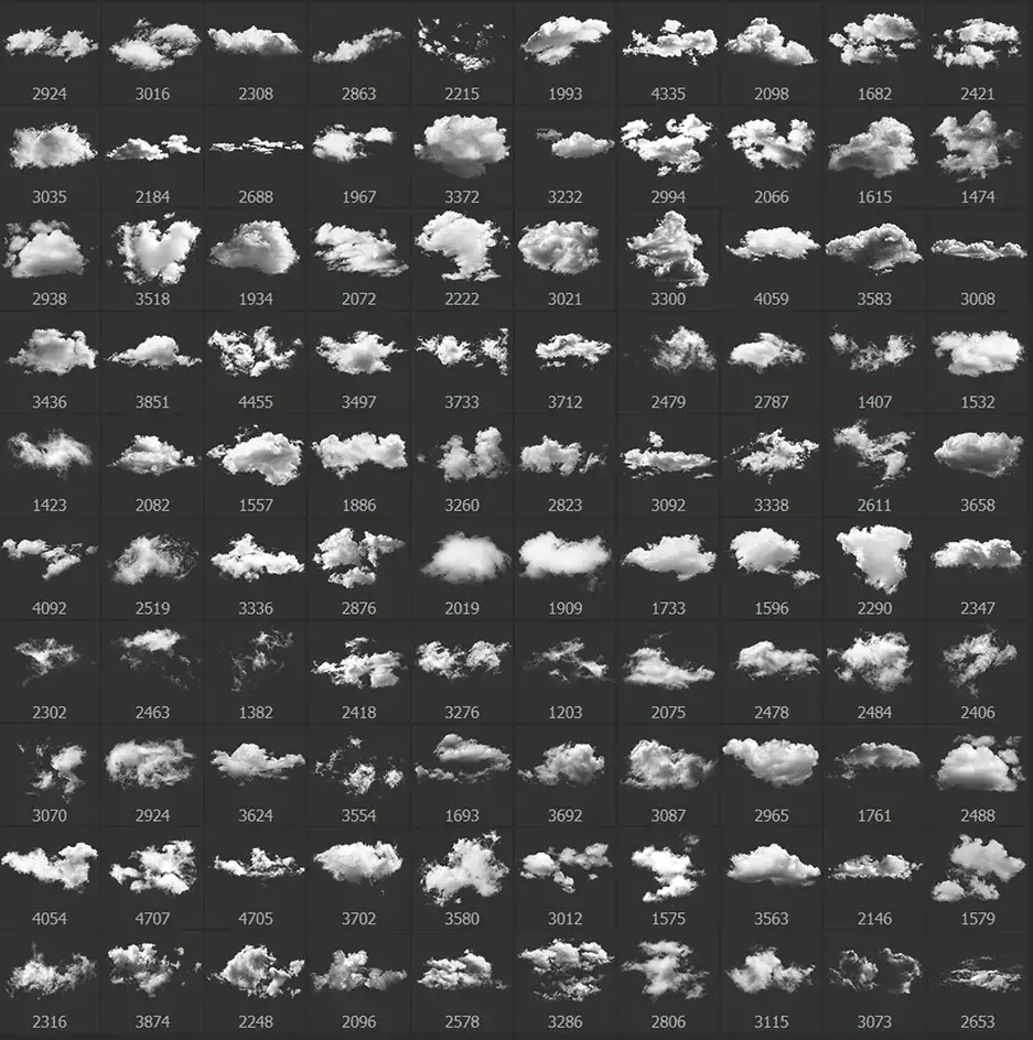 【云朵笔刷】200+云朵笔刷 云朵免扣素材 PSD源文件【1G】