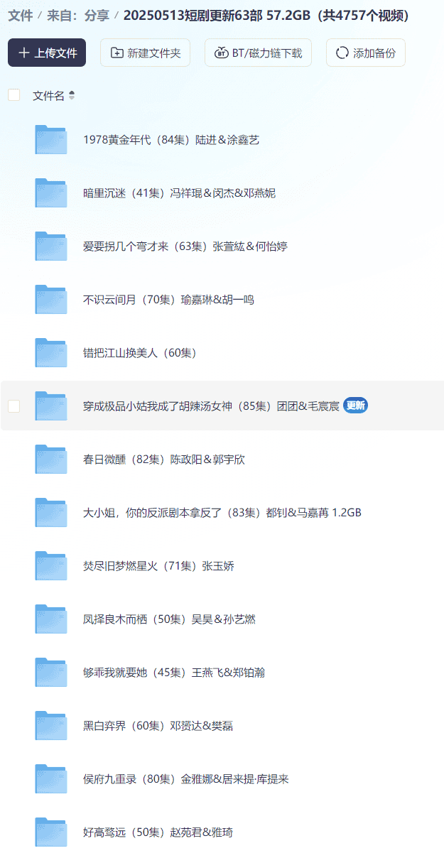 【短剧】20250513短剧更新63部 57.2GB(共4757个视频)