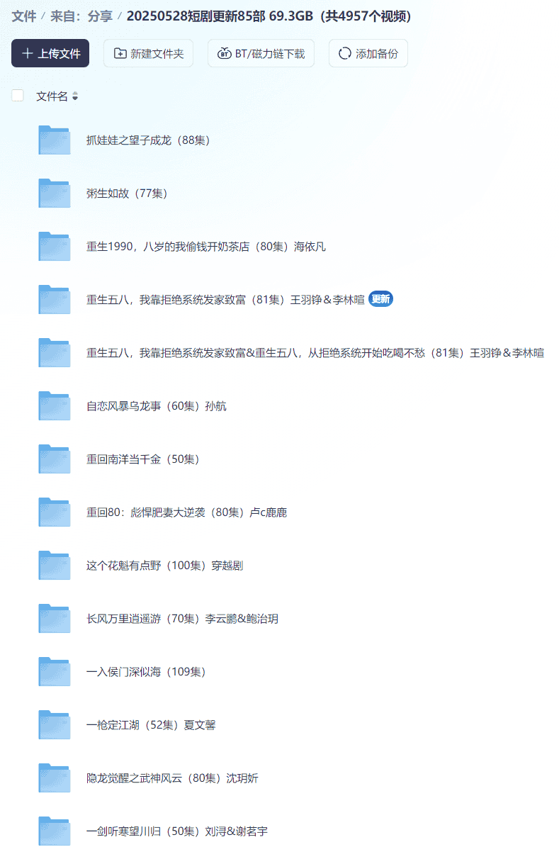 【短剧】20250528短剧更新85部  69.3GB(共4957个视频)