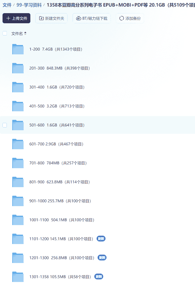 1358本豆瓣高分系列电子书 EPUB+MOBI+PDF等 20.1GB(共5109个项目)