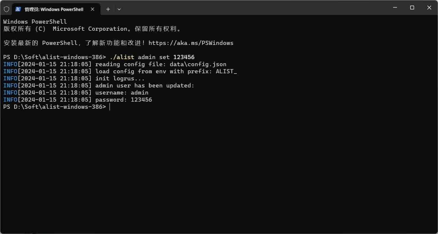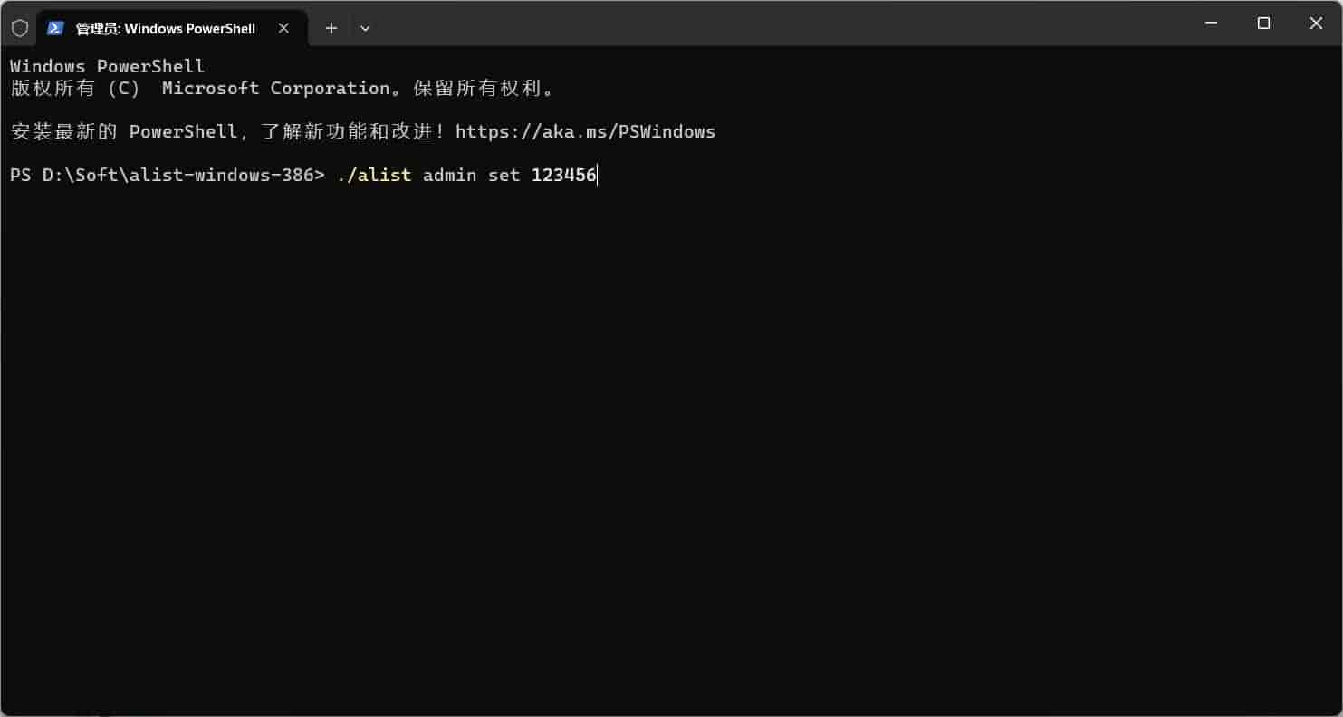 例如我们设置一个密码为123456,就是./alist admin set 123456如下图