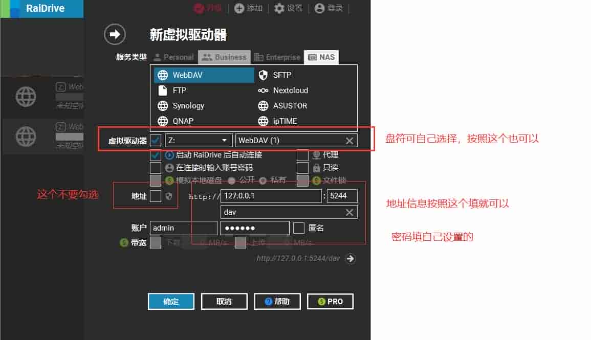 四、配置Raidrive,挂载到本地