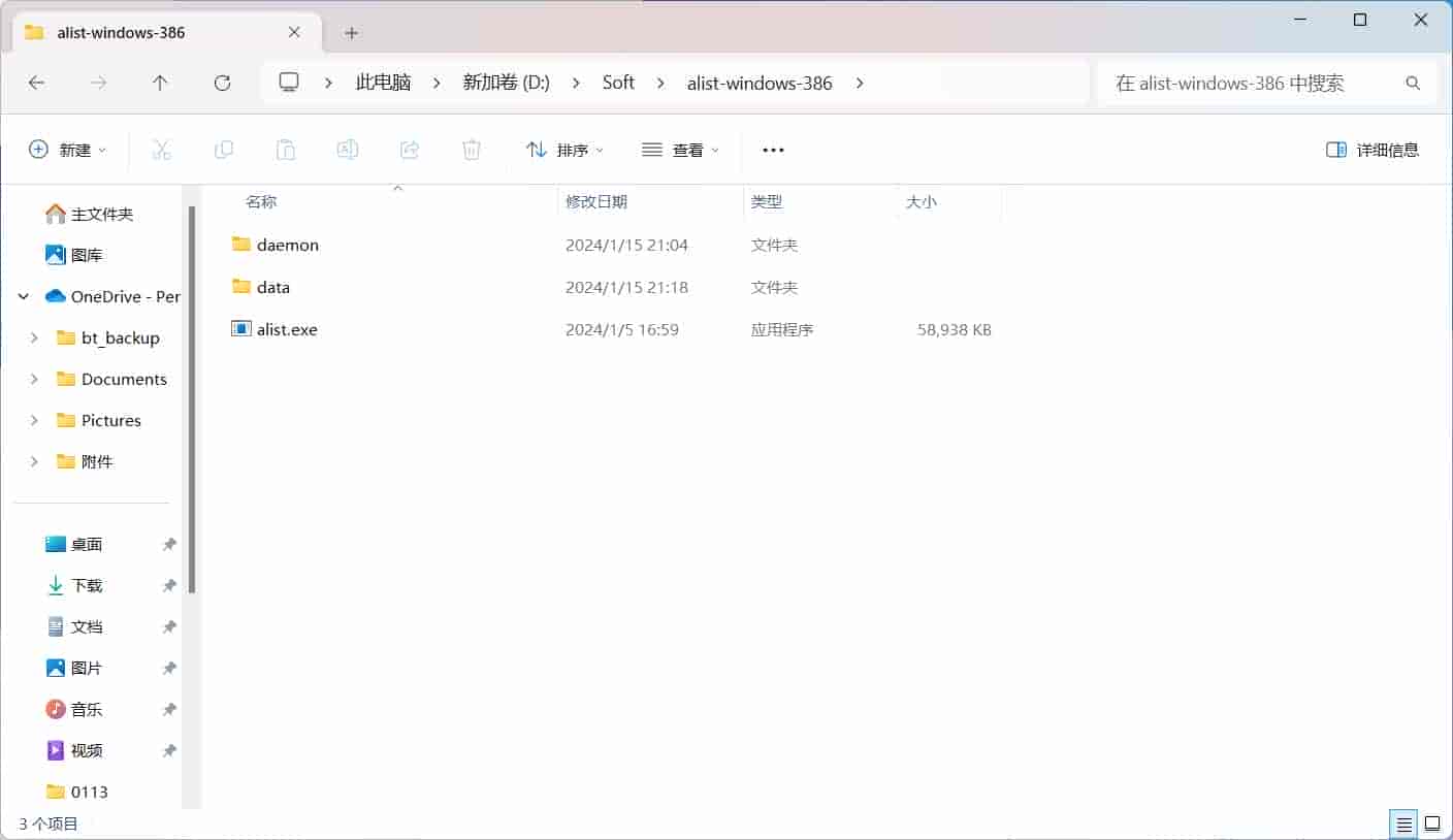 下载解压后得到一个alist.exe程序文件,双击即可