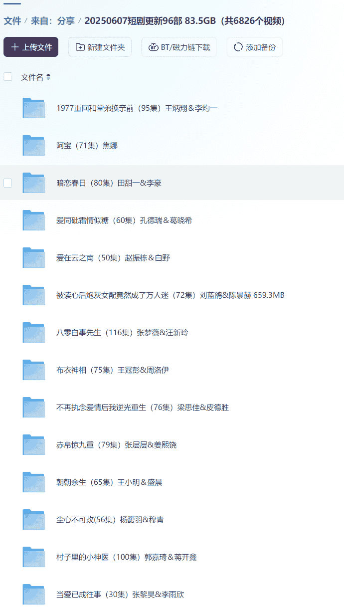 【短剧】20250607短剧更新96部 83.5GB(共6826个视频)