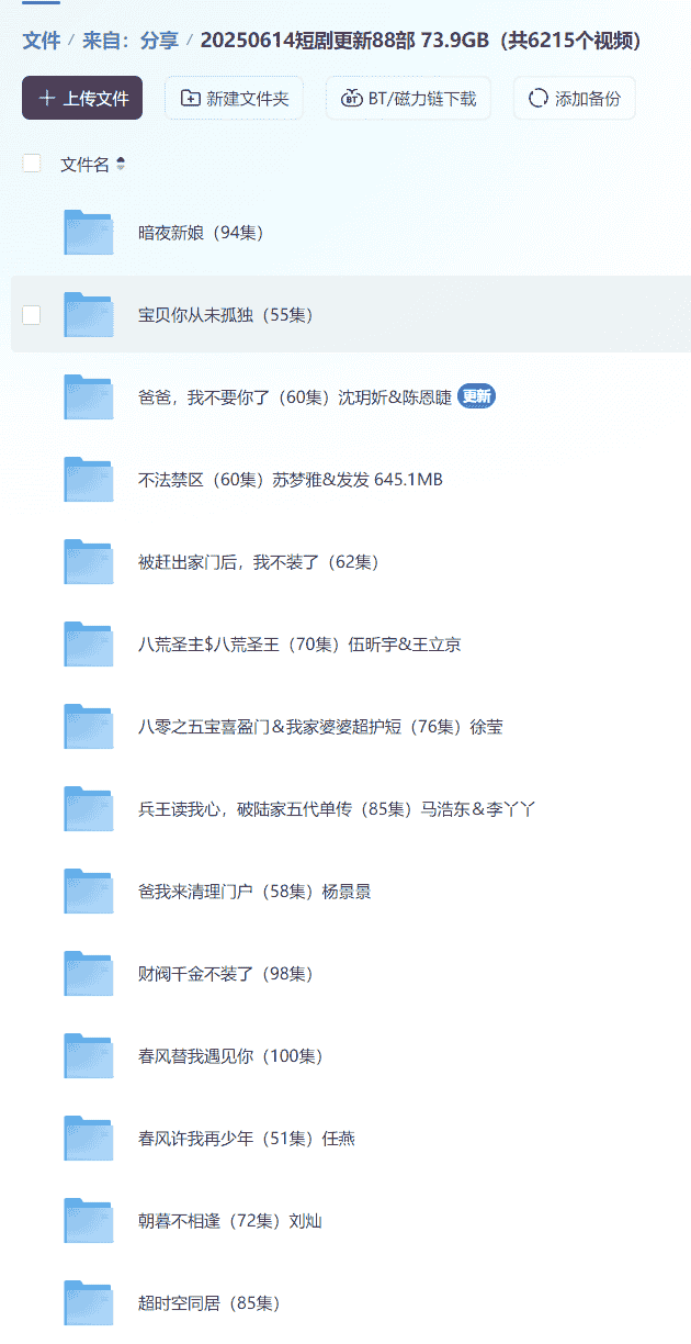 【短剧】20250614短剧更新88部 73.9GB(共6215个视频)